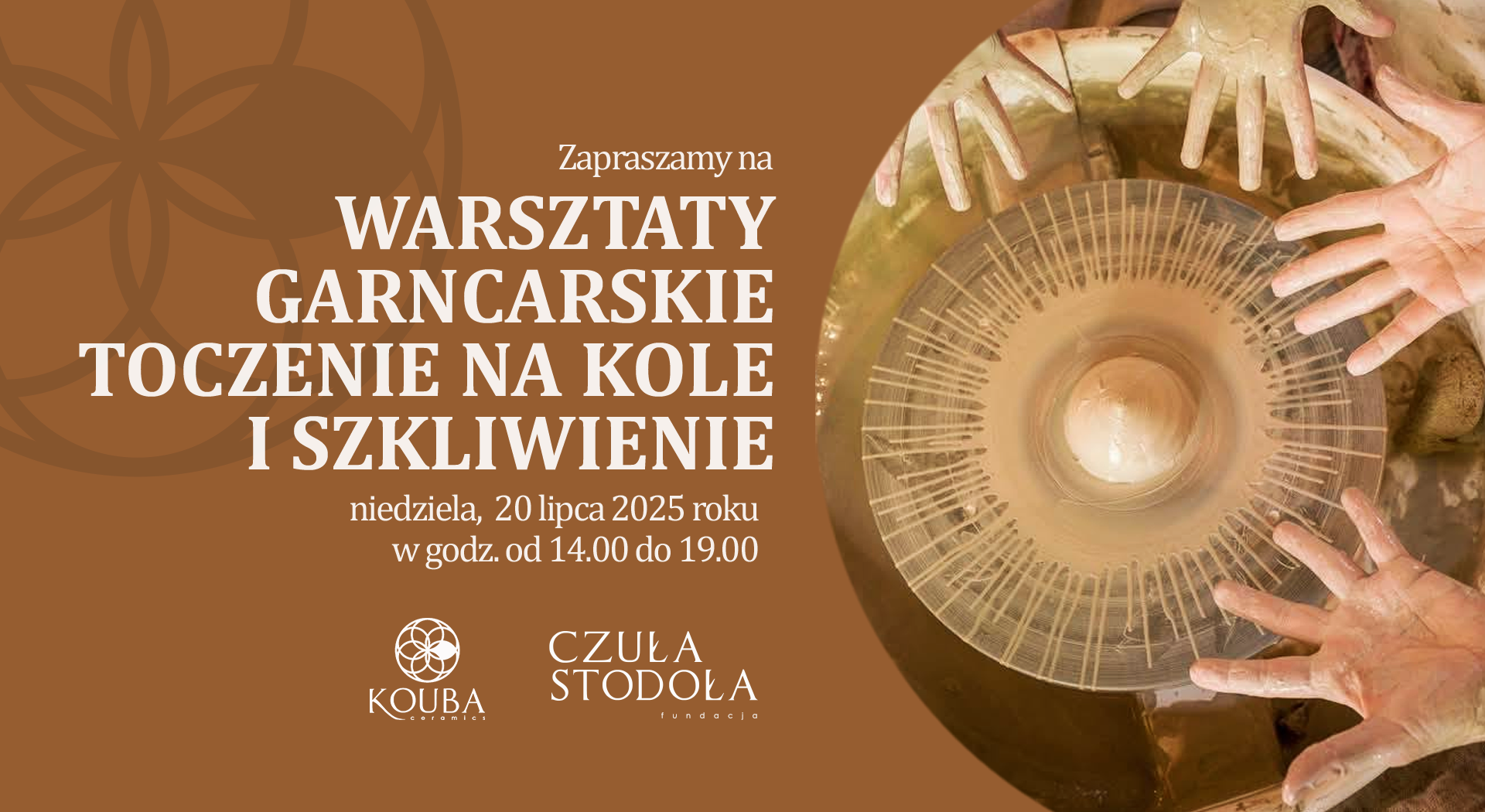 Koszt udziału w warsztatach 100 zł za osobę – w cenie nauka przy kole ze mną oraz samodzielne wprawki i późniejszy wypał jednego naczynia w piecu garncarskim. Ilość miejsc jest ograniczona, obowiązuje kolejność zgłoszeń – zapisy – proszę pisać na KoubaCeramics@gmail.com. Toczymy w dwóch grupach (godz. 14, 16, przy zgłoszeniu podaj do której grupy chcesz dołączyć).